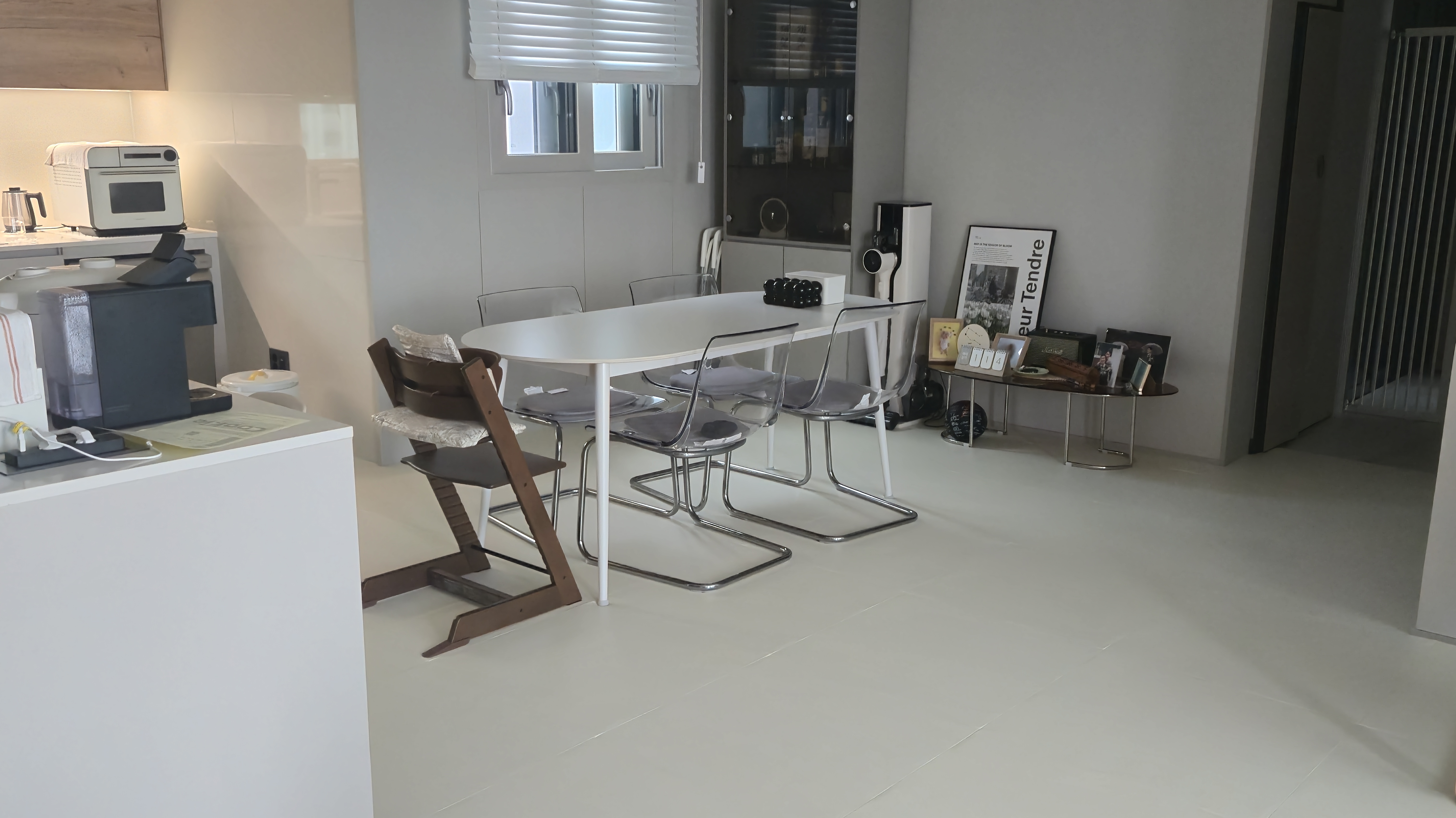 집이 베이지 톤이라 누리 65 오트베이지 색으로 했는데 생각했던 것보다 훨씬 깔끔하고 기존 바닥이 대리석 바닥이여서 차가운느낌이엇는데 따뜻한 느낌이 드네요