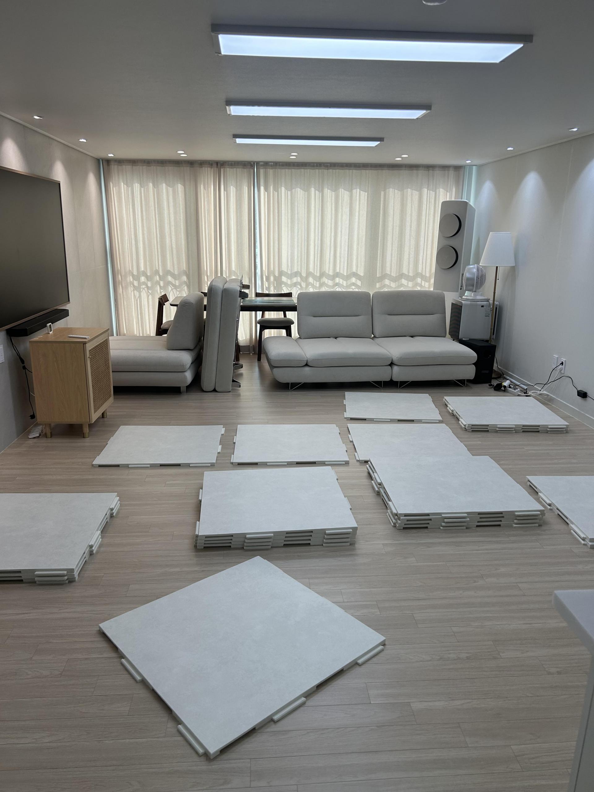 지난 6월 벡스코 베이비페어에서 매트 여러군데 비교해보고 쿠키매트로 계약 후 드디어 이번주 시공까지 완료했습니다🙂